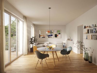 Die beiden größeren Erdgeschosswohnungen bieten viel Raum zur Selbstverwirklichung. Klein wie Groß genießen vor allem im Sommer den direkten Zugang vom Wohnzimmer zum eingezäunten Garten